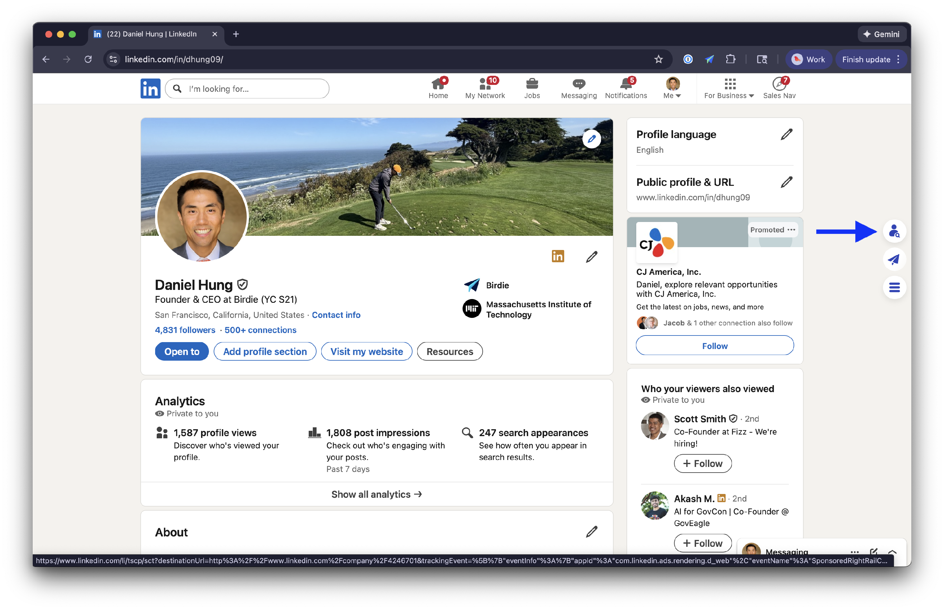 The easiest way to do this is to put together a list 5–10 people who you know fit your ICP. For each person in the list, open their LinkedIn profile. Click on the people search icon on the right hand side